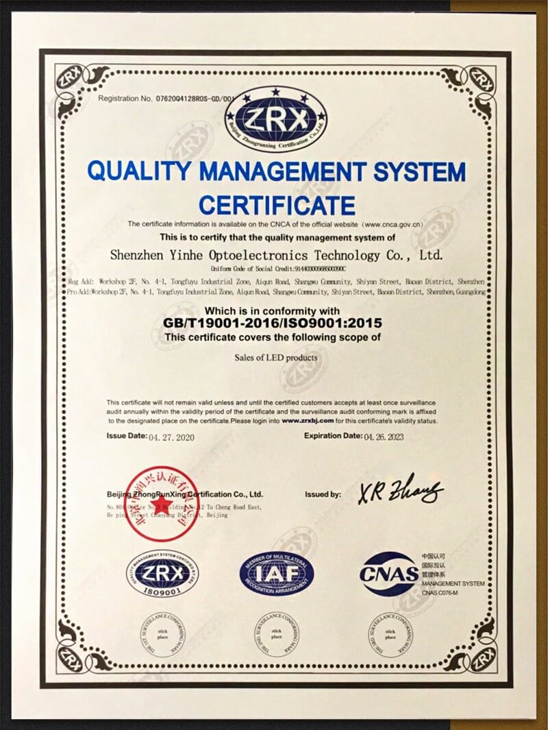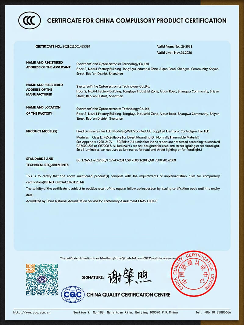 YHLED was established in 2009 and covers an area of 6000 square meters. It has advanced laboratories, automatic and semi-automatic production equipment to ensure production efficiency and product quality. The company's product quality is at the international leading level. It has successively passed CCC, CQC, CE and other domestic and international safety certifications, passed ISO9001: 2008 international standard quality management system certification, I national high-tech enterprise certification and energy-saving certification. We are committed to building a global professional lighting application brand, and actively promoting the development and application of lighting technology, so that people can share the good life brought about by the advancement of lighting. We adhere to the concept of harmony and win-win, emphasize credibility and quality, and take customer satisfaction as our service tenet. Since its establishment, the company has actively participated in the construction of lighting projects and has achieved very good results, and has won more than 100 honors in the national lighting industry.